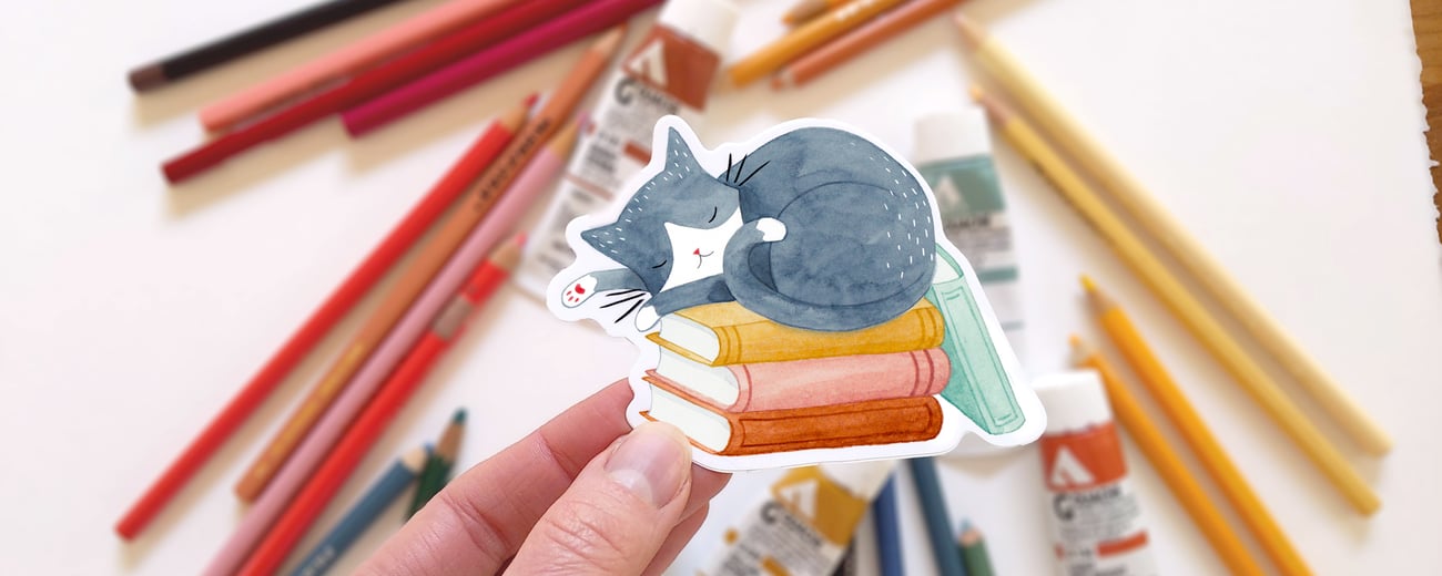 Cat and Books Sticker