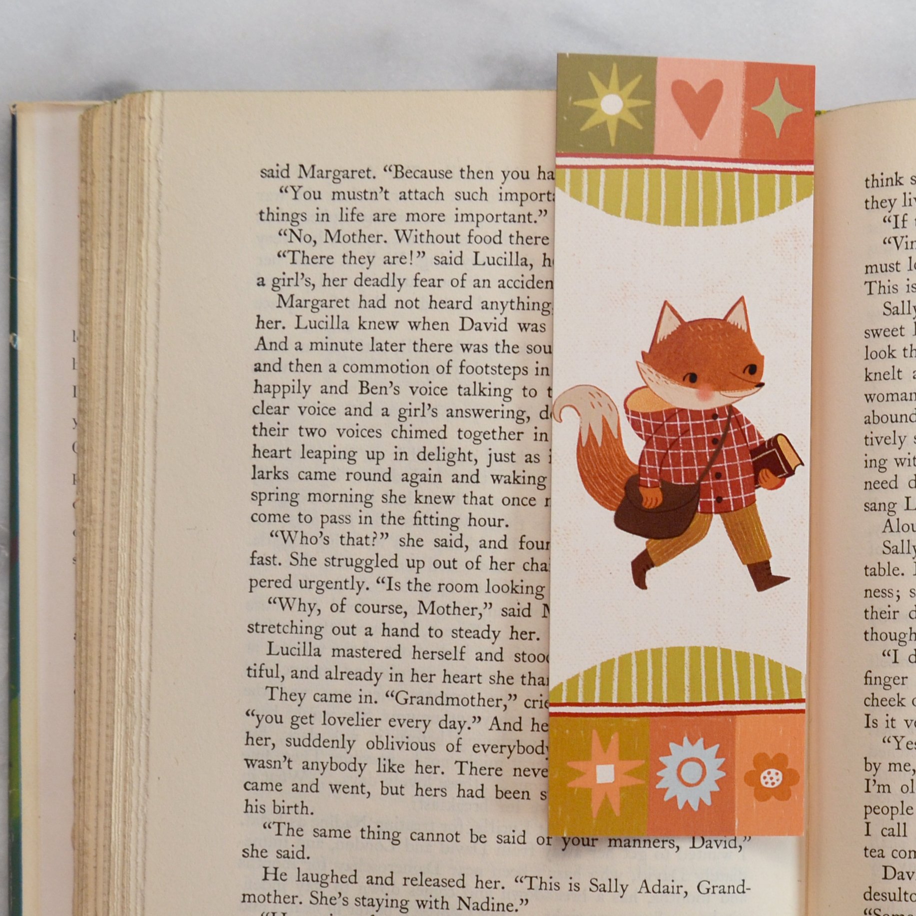 ◆ Keep track of what page you're on with this cute & cozy bookmark. Featuring my original illustration of a fox all bundled up for an Autumn walk with their book under their arm
