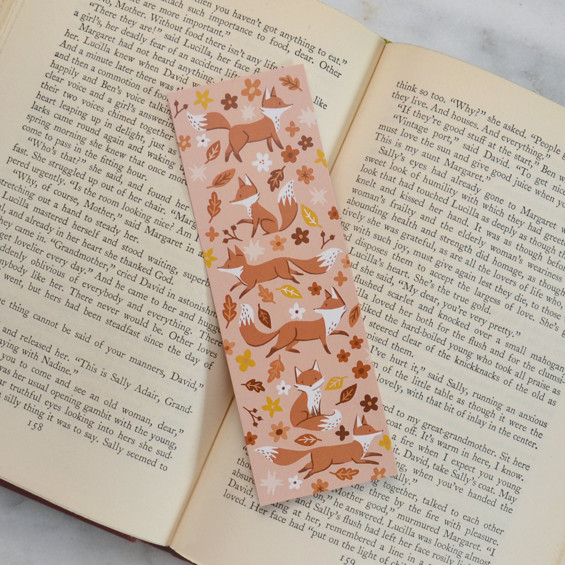 ◆ Keep track of what page you're on with this cute fox bookmark. Featuring my original illustration of playful foxes frolicking among flowers and leaves.