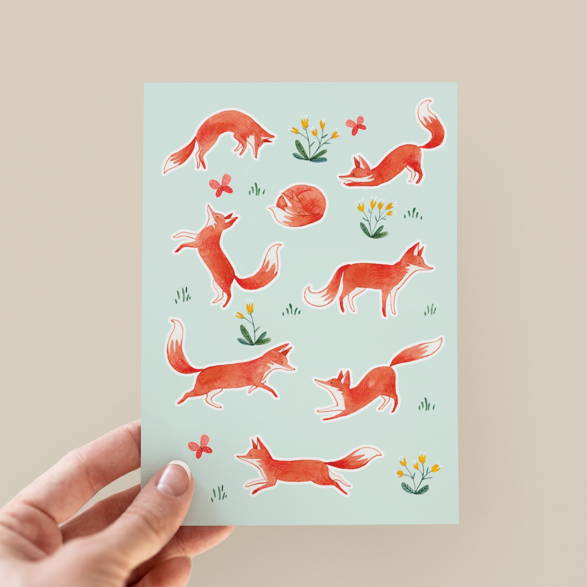 ◆ Each sheet contains 8 fox stickers (the flowers & butterflies aren’t cut out)