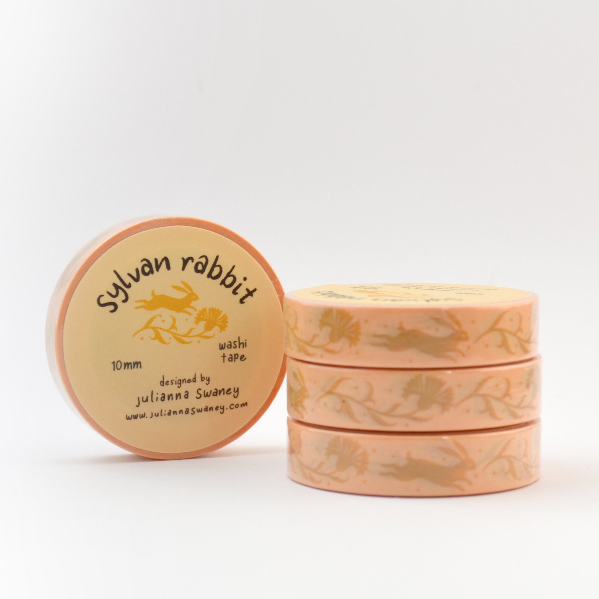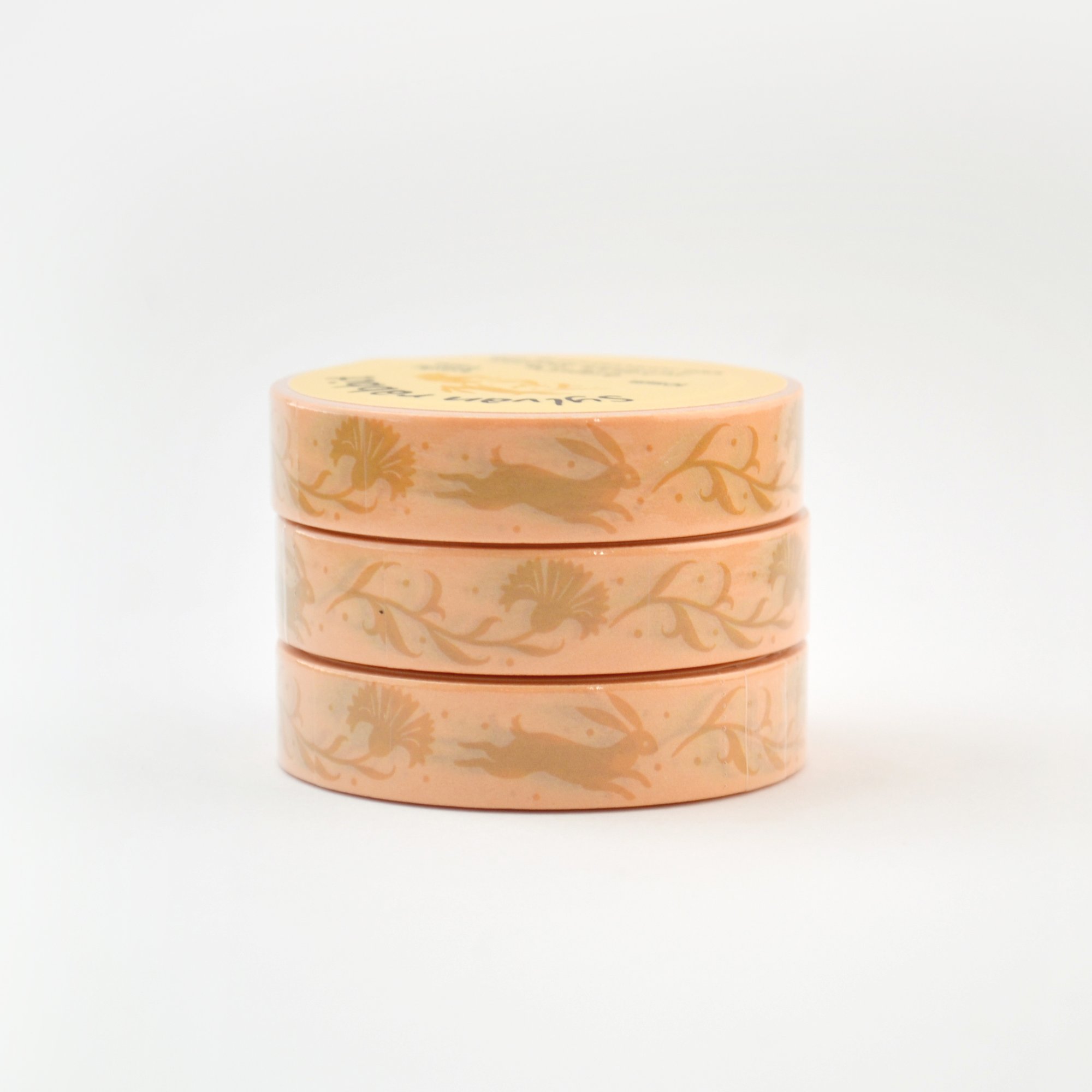 This narrow washi tape features a charming design of swift rabbits and dianthus flowers